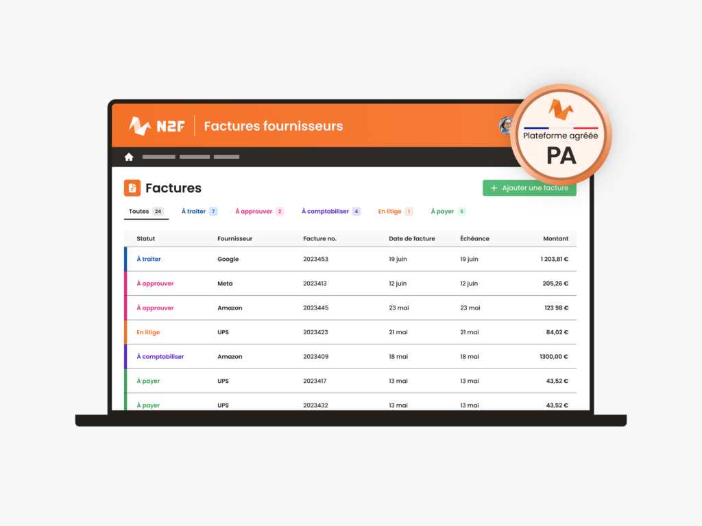 Envoyez et recevez vos factures électroniques directement via la plateforme N2F.